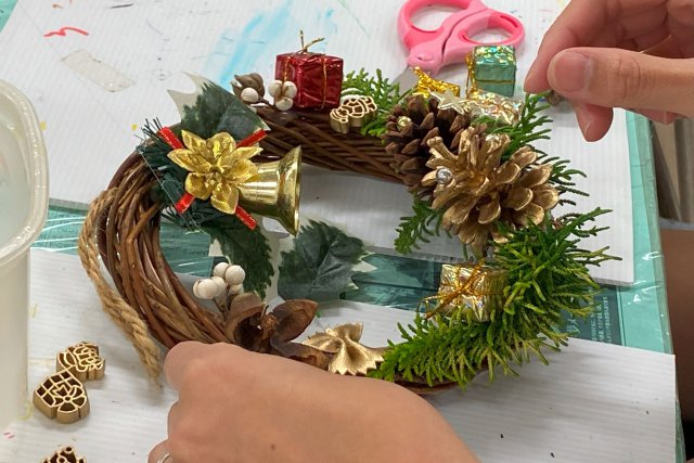似顔絵コーナー、クリスマスリースづくりなど季節のイベントも実施しています。 -