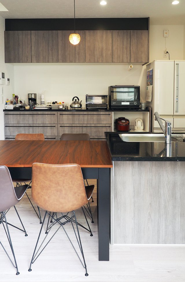 奥様 カップボードの下はゴミ箱置き場にしてスッキリしたし、キッチンの後ろにパントリーがあるので調味料等必要なものをすぐに取り出して、料理がしやすいです。カップボードにはお皿等を収納しているので、食卓で席を立たずに物の出し入れが出来ます。この距離感は本当に便利。 -
