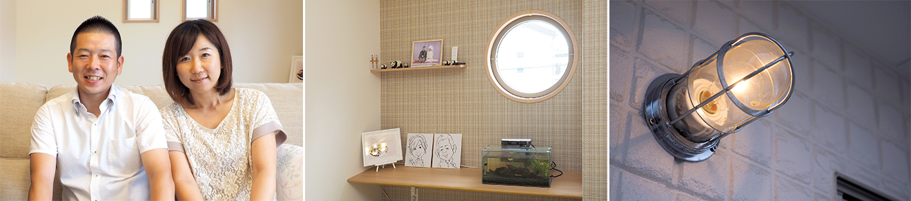 アクセントとなる様に丸窓や船舶で使用している照明をあしらったりと、細部までのこだわりを感じられるY様邸
