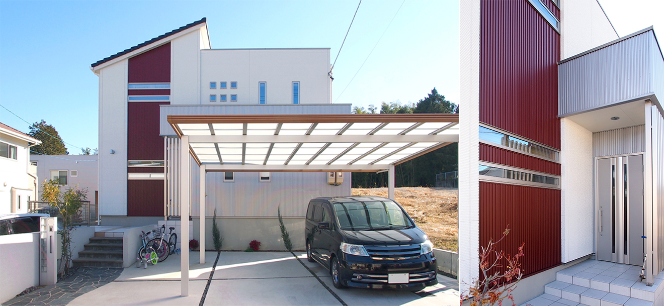 N様邸はサイディングとガルバリウムを組み合わせた印象的な外観ですが、