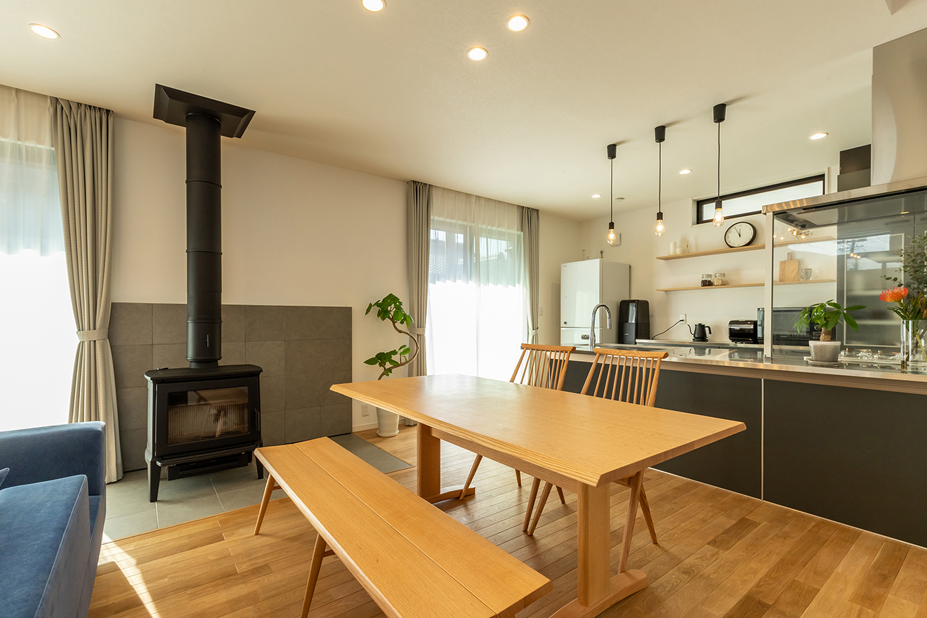 インタビュー中、元気に会話に参加してくれた息子さん。その可愛らしさに、思わず笑みがこぼれてしまいました。自然な暖かさを伝える薪ストーブや、肌触りの良い無垢床、庭の芝生など、お子様の感性を育むような空間づくりに、お二人の大きな愛情が感じられます。これからもこのお住まいで、お子様がのびのびと健やかに成長されることを願っています。