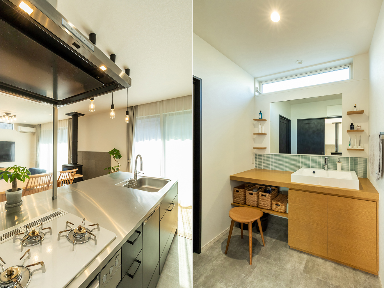 奥様 私が友人を招くのが好きなので、1階には生活感が現れないように工夫しました。洗濯物が目に触れないように干場も2階に設けましたし、脱衣所と洗面室も分けてあります。脱衣所は生活感が出てしまいますからね。 -