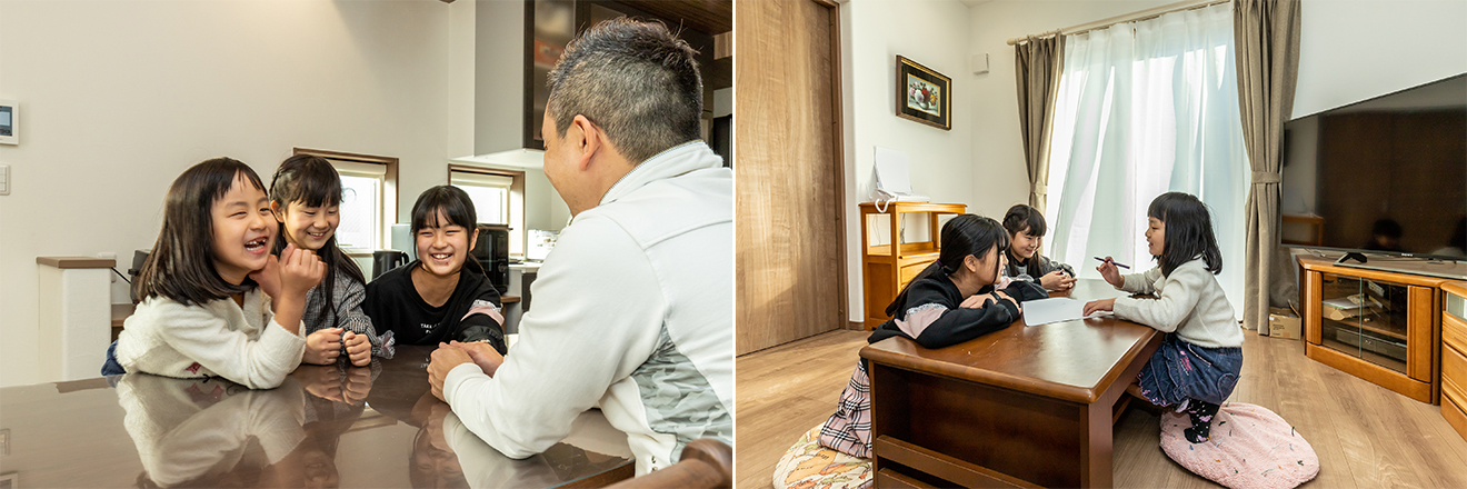 ご主人 将来、娘たちが子供を産む際に帰ってきやすい家にしたつもりです。その先、娘家族と私たち夫婦が二世帯で暮らせるようにも。末永く、家族仲良く暮らしていけたらいいですね。そして、この家を住み継いでいけたらいいなと考えています。