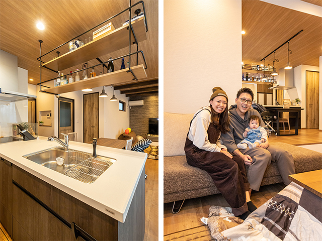 ご主人 キッチン廻りもこだわりました。天板の高さ、アイアン調の吊り戸棚など私の意見を採用しましたので使いやすいです。