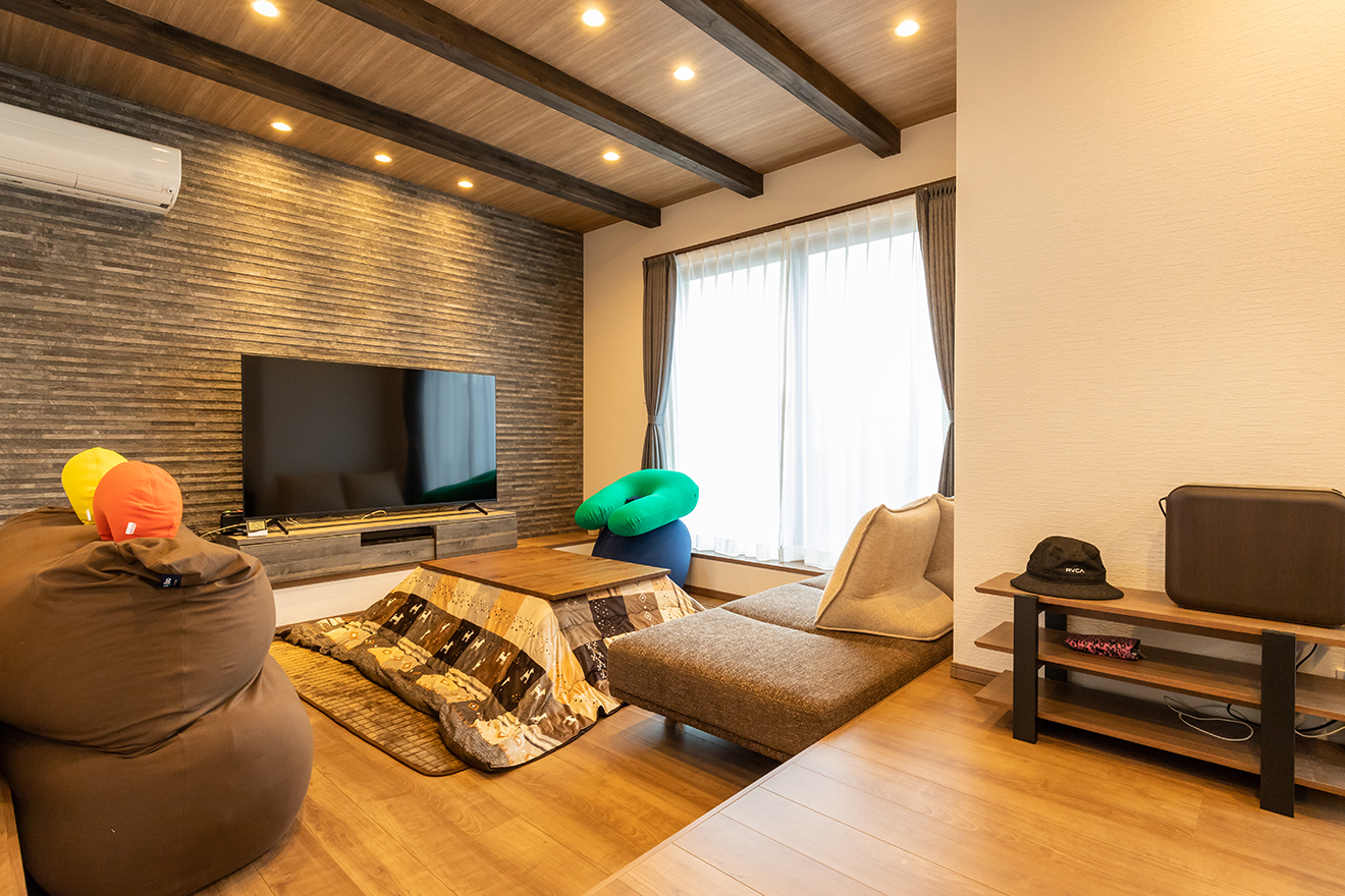 営業 リビングはそのような空間になりますね。家族、ご友人皆さんが自然に集まりやすいと思います。