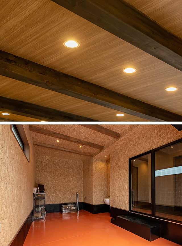 ご主人 そうですね。自分のガレージなので塗料屋さんから塗料を購入して自分で塗りました。どうしても床はオレンジ色に塗りたかったです。