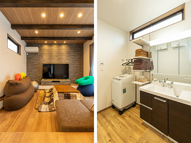 ご主人 最初はダウンフロアにあんまり興味がなくて。だけど、三昭堂さんで建築した先輩がダウンフロアを採用していて薦められました。結果作ってみたら、こっちの方が落ちついて良いなと思いました。ダイニング・キッチン側とリビング側に空間のメリハリがついて凄く気に入っています。
