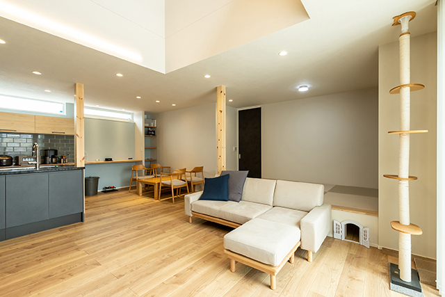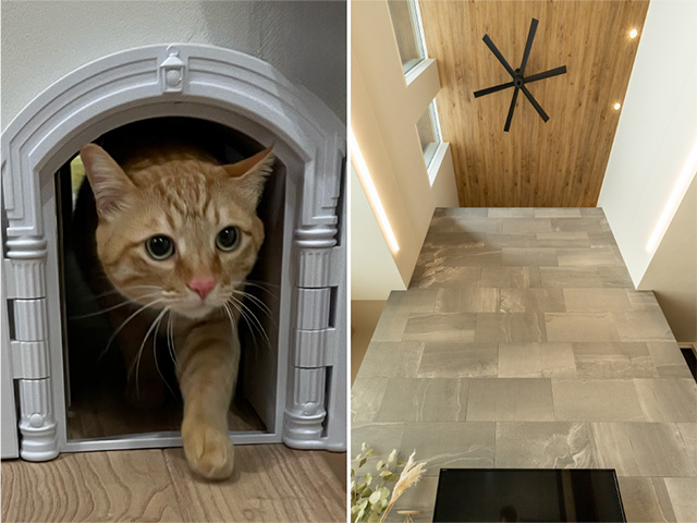 こだわりポイントを教えてください 01ご主人 猫を飼っているのでペット動線にこだわりました。前の家ではドアを開けて欲しくてよく鳴いていたんです。新しい家では自由に移動出来るようにしてあげたくて。