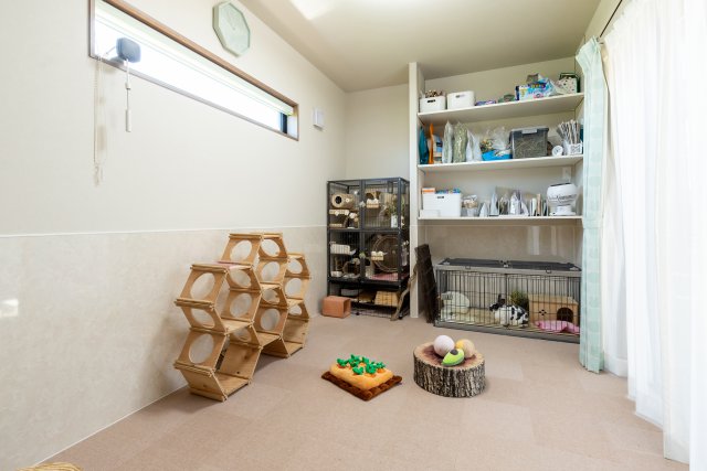 S様 やっぱりペットの部屋ですかね。ウサギなので壁をかじるのですが、腰高までパネルを張ったり、コンセントの位置を高くしたり、フロア材にも拘りました。
