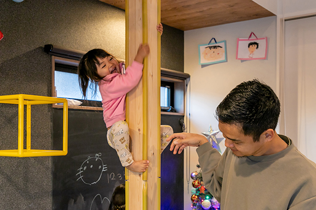 奥様 小学生の子とかは二階からスーと降りてきたりしますね。本当は滑り台も欲しかったですけど、狭くなってしまうので。 -