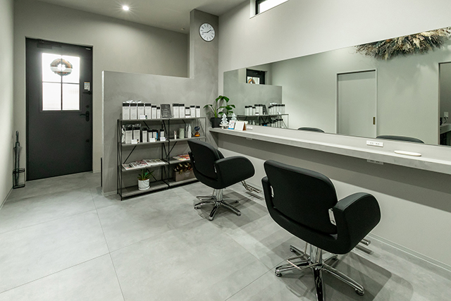 奥様 お店も家の方も動線と内装がポイントですね。美容室なのでリラックスできるようにシックな感じでまとめましたが、住居は明るい雰囲気にしたところも気に入っています。 -