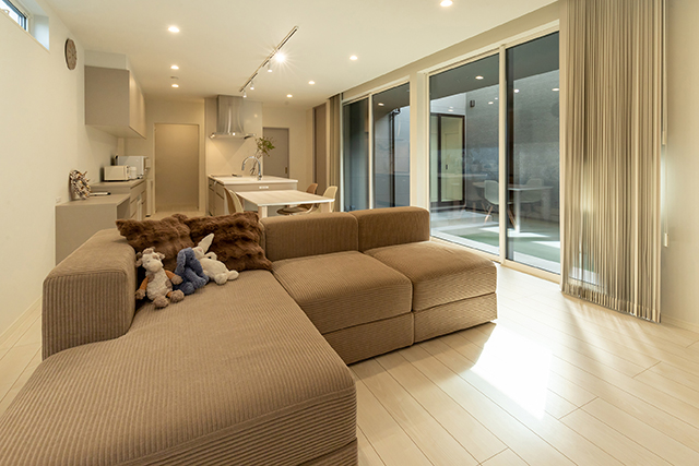 奥様 使い勝手が良くなったと思いますね。いっぱい話し合って、こだわりが詰まった家なので生活しやすいです。 中庭が特にお気に入りですね。何かしながらでも目が行き届くようにできていて助かってます。